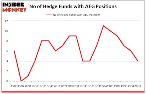 Aegon N.V. (NYSE:AEG) was in 4 hedge funds’ portfolios at the end of the first quarter of 2020. AEG has experienced a decrease in activity from the world’s largest hedge funds lately. There were 6 hedge funds in our database with AEG positions at the end of the previous quarter. Our calculations also showed that AEG isn’t among the 30 most popular stocks among hedge funds (click for Q1 rankings and see the video for a quick look at the top 5 stocks).