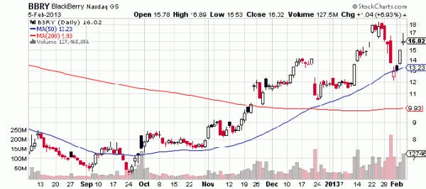 A lot of people got rich trading Research In Motion Ltd (NASDAQ:BBRY) during the past few months. Since bottoming above $6 in late 2012, the stock has multiplied to just under 18. But now the price trades near $13.