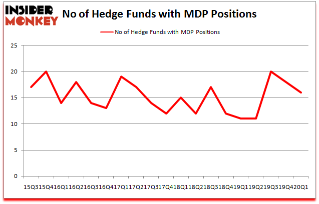 At Q1’s end, a total of 16 of the hedge funds tracked by Insider Monkey held long positions in this stock, a change of -11% from one quarter earlier. The graph below displays the number of hedge funds with bullish position in MDP over the last 18 quarters. With hedgies’ sentiment swirling, there exists an “upper tier” of noteworthy hedge fund managers who were increasing their holdings substantially (or already accumulated large positions).