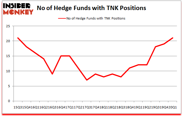 At the end of the first quarter, a total of 21 of the hedge funds tracked by Insider Monkey were bullish on this stock, a change of 11% from the fourth quarter of 2019. The graph below displays the number of hedge funds with bullish position in TNK over the last 18 quarters. With the smart money’s positions undergoing their usual ebb and flow, there exists an “upper tier” of noteworthy hedge fund managers who were upping their holdings meaningfully (or already accumulated large positions).