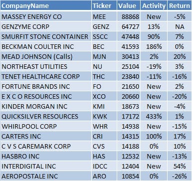 Realm also invested in Genzyme which was acquired by Sanofi-Aventis for $74 a share. John Bader’s Halcyon Asset Management increased its GENZ ownership by 368% in the first quarter of 2011. Likewise, Thomas Stayer’s Farallon Capital increased its ownership by 152%, owning 6.7 million shares valued at $512 million at the end of March.