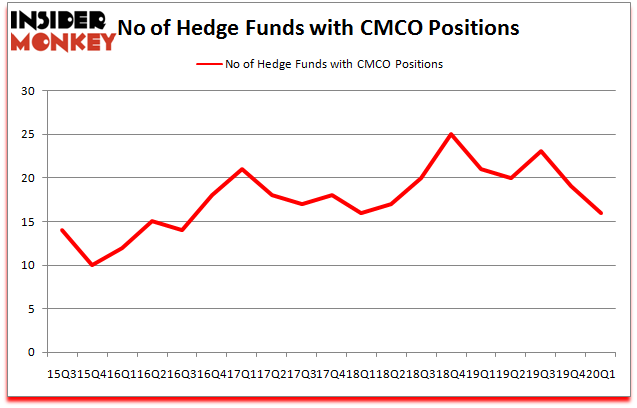At the end of the first quarter, a total of 16 of the hedge funds tracked by Insider Monkey held long positions in this stock, a change of -16% from the fourth quarter of 2019. By comparison, 21 hedge funds held shares or bullish call options in CMCO a year ago. So, let’s find out which hedge funds were among the top holders of the stock and which hedge funds were making big moves.