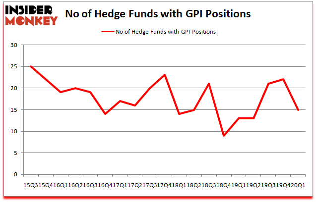 At the end of the first quarter, a total of 15 of the hedge funds tracked by Insider Monkey were long this stock, a change of -32% from the previous quarter. By comparison, 13 hedge funds held shares or bullish call options in GPI a year ago. So, let’s examine which hedge funds were among the top holders of the stock and which hedge funds were making big moves.