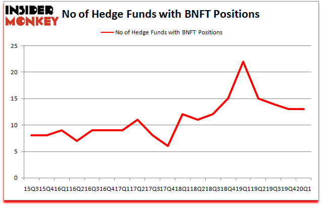 At Q1’s end, a total of 13 of the hedge funds tracked by Insider Monkey were long this stock, a change of 0% from the fourth quarter of 2019. By comparison, 22 hedge funds held shares or bullish call options in BNFT a year ago. With the smart money’s positions undergoing their usual ebb and flow, there exists an “upper tier” of key hedge fund managers who were increasing their stakes meaningfully (or already accumulated large positions).