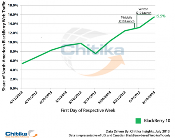 For more information on what is going on with the company right now, we don’t have to look any further than a recent study completed by Chitika Insights: BlackBerry 10 Web Traffic Share Grows but BlackBerry Declines Overall