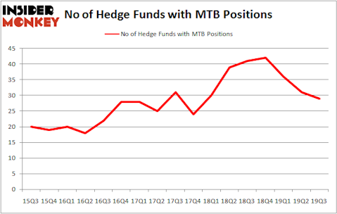 Is M&T Bank Corporation (NYSE:MTB) a buy right now? The smart money is in a bearish mood. The number of long hedge fund positions were trimmed by 2 in recent months. Our calculations also showed that MTB isn’t among the 30 most popular stocks among hedge funds (click for Q3 rankings and see the video at the end of this article for Q2 rankings). MTB was in 29 hedge funds’ portfolios at the end of the third quarter of 2019. There were 31 hedge funds in our database with MTB holdings at the end of the previous quarter.