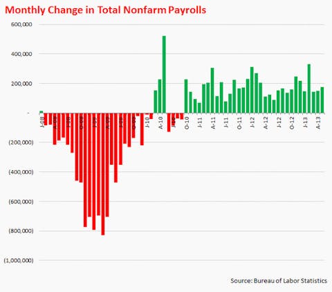 A Yahoo! Inc. (NASDAQ:YHOO) Finance blog post captured the market’s reaction appropriately, noting that the report was “good, but not too good.” On one hand, great news on the jobs front could induce the Federal Reserve to ease off of its support for the economy, which, in turn, would likely cause equity prices to deflate. But on the other hand, bad news would incite fear of a potential double-dip recession. Just like Goldilocks’ porridge, a slight beat was just right as far as the market was concerned.