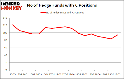 Citigroup Inc. (NYSE:C) has experienced an increase in hedge fund interest of late. C was in 94 hedge funds’ portfolios at the end of the third quarter of 2019. There were 83 hedge funds in our database with C positions at the end of the previous quarter. Our calculations also showed that C currently ranks 16th among the 30 most popular stocks among hedge funds (click for Q3 rankings and see the video at the end of this article for Q2 rankings).