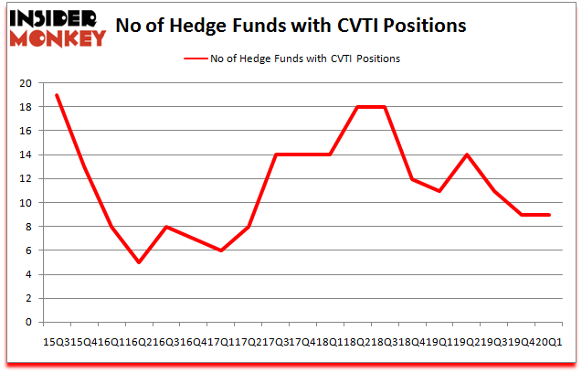Heading into the second quarter of 2020, a total of 9 of the hedge funds tracked by Insider Monkey were bullish on this stock, a change of 0% from one quarter earlier. By comparison, 11 hedge funds held shares or bullish call options in CVTI a year ago. With hedge funds’ positions undergoing their usual ebb and flow, there exists a few notable hedge fund managers who were adding to their holdings substantially (or already accumulated large positions).