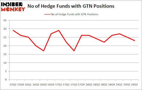 At Q3’s end, a total of 23 of the hedge funds tracked by Insider Monkey were long this stock, a change of -8% from the previous quarter. The graph below displays the number of hedge funds with bullish position in GTN over the last 17 quarters. With hedge funds’ positions undergoing their usual ebb and flow, there exists a select group of notable hedge fund managers who were increasing their holdings significantly (or already accumulated large positions).