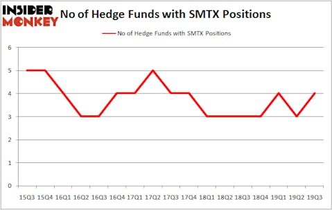 At the end of the third quarter, a total of 4 of the hedge funds tracked by Insider Monkey were long this stock, a change of 33% from the second quarter of 2019. By comparison, 3 hedge funds held shares or bullish call options in SMTX a year ago. So, let’s review which hedge funds were among the top holders of the stock and which hedge funds were making big moves.