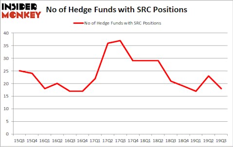 At the end of the third quarter, a total of 18 of the hedge funds tracked by Insider Monkey were bullish on this stock, a change of -22% from the previous quarter. On the other hand, there were a total of 21 hedge funds with a bullish position in SRC a year ago. With hedgies’ sentiment swirling, there exists an “upper tier” of noteworthy hedge fund managers who were adding to their holdings substantially (or already accumulated large positions).