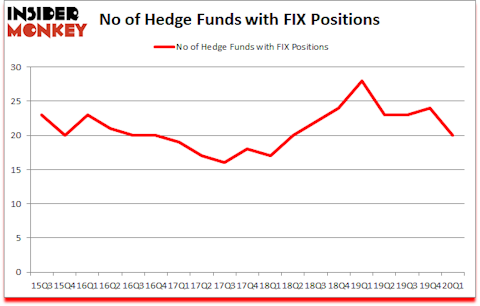 Heading into the second quarter of 2020, a total of 20 of the hedge funds tracked by Insider Monkey held long positions in this stock, a change of -17% from the fourth quarter of 2019. Below, you can check out the change in hedge fund sentiment towards FIX over the last 18 quarters. So, let’s see which hedge funds were among the top holders of the stock and which hedge funds were making big moves.