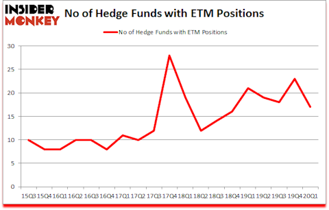 At Q1’s end, a total of 17 of the hedge funds tracked by Insider Monkey were long this stock, a change of -26% from the previous quarter. Below, you can check out the change in hedge fund sentiment towards ETM over the last 18 quarters. So, let’s check out which hedge funds were among the top holders of the stock and which hedge funds were making big moves.