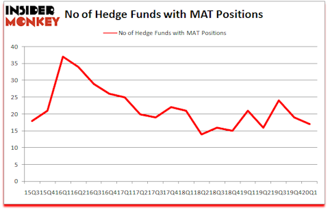 At the end of the first quarter, a total of 17 of the hedge funds tracked by Insider Monkey were long this stock, a change of -11% from the fourth quarter of 2019. By comparison, 21 hedge funds held shares or bullish call options in MAT a year ago. With hedge funds’ positions undergoing their usual ebb and flow, there exists a few key hedge fund managers who were increasing their holdings significantly (or already accumulated large positions).