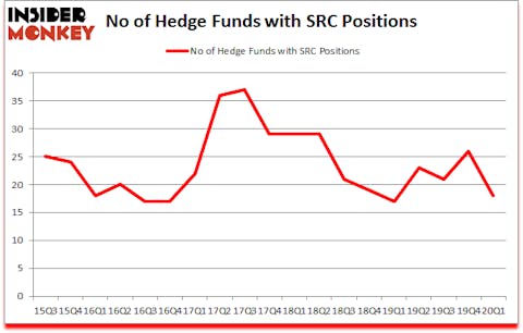 At Q1’s end, a total of 18 of the hedge funds tracked by Insider Monkey were bullish on this stock, a change of -31% from the fourth quarter of 2019. On the other hand, there were a total of 17 hedge funds with a bullish position in SRC a year ago. With hedgies’ sentiment swirling, there exists a few notable hedge fund managers who were upping their stakes significantly (or already accumulated large positions).
