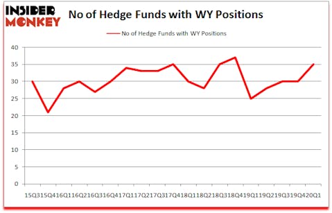 Insider Monkey has processed numerous 13F filings of hedge funds and successful value investors to create an extensive database of hedge fund holdings. The 13F filings show the hedge funds’ and successful investors’ positions as of the end of the first quarter. You can find articles about an individual hedge fund’s trades on numerous financial news websites. However, in this article we will take a look at their collective moves over the last 4.5 years and analyze what the smart money thinks of Weyerhaeuser Co. (NYSE:WY) based on that data and determine whether they were really smart about the stock.
