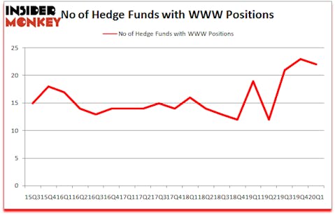 At Q1’s end, a total of 22 of the hedge funds tracked by Insider Monkey were bullish on this stock, a change of -4% from one quarter earlier. On the other hand, there were a total of 19 hedge funds with a bullish position in WWW a year ago. With the smart money’s capital changing hands, there exists a select group of notable hedge fund managers who were boosting their stakes meaningfully (or already accumulated large positions).