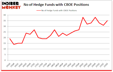 CBOE Global Markets Inc (NASDAQ:CBOE) was in 35 hedge funds’ portfolios at the end of the third quarter of 2021. The all time high for this statistic is 38. CBOE has experienced an increase in hedge fund sentiment of late. There were 31 hedge funds in our database with CBOE positions at the end of the second quarter. Our calculations also showed that CBOE isn’t among the 30 most popular stocks among hedge funds (click for Q3 rankings).