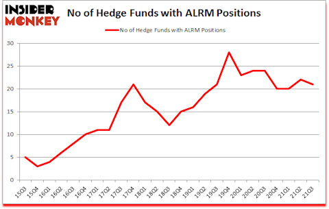 Alarm.com Holdings Inc (NASDAQ:ALRM) shareholders have witnessed a decrease in hedge fund sentiment in recent months. Alarm.com Holdings Inc (NASDAQ:ALRM) was in 21 hedge funds’ portfolios at the end of the third quarter of 2021. The all time high for this statistic is 28. There were 22 hedge funds in our database with ALRM holdings at the end of June. Our calculations also showed that ALRM isn’t among the 30 most popular stocks among hedge funds (click for Q2 rankings).
