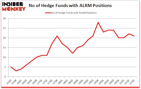 Alarm.com Holdings Inc (NASDAQ:ALRM) shareholders have witnessed a decrease in hedge fund sentiment in recent months. Alarm.com Holdings Inc (NASDAQ:ALRM) was in 21 hedge funds’ portfolios at the end of the third quarter of 2021. The all time high for this statistic is 28. There were 22 hedge funds in our database with ALRM holdings at the end of June. Our calculations also showed that ALRM isn’t among the 30 most popular stocks among hedge funds (click for Q2 rankings).