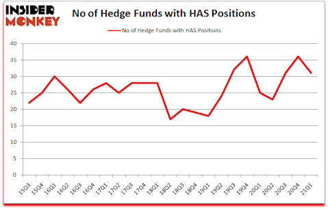 Hasbro, Inc. (NASDAQ:HAS) investors should be aware of a decrease in activity from the world’s largest hedge funds lately. Hasbro, Inc. (NASDAQ:HAS) was in 31 hedge funds’ portfolios at the end of the first quarter of 2021. The all time high for this statistic is 36. There were 36 hedge funds in our database with HAS holdings at the end of December. Our calculations also showed that HAS isn’t among the 30 most popular stocks among hedge funds (click for Q1 rankings).