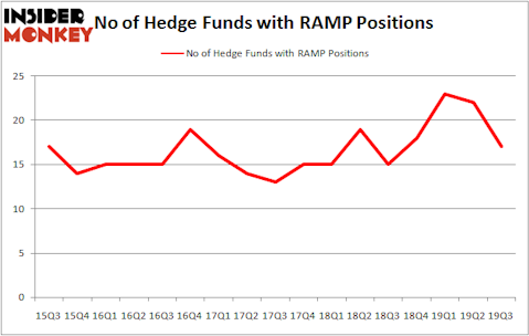 At the end of the third quarter, a total of 17 of the hedge funds tracked by Insider Monkey were long this stock, a change of -23% from one quarter earlier. Below, you can check out the change in hedge fund sentiment towards RAMP over the last 17 quarters. With the smart money’s sentiment swirling, there exists a select group of notable hedge fund managers who were adding to their holdings significantly (or already accumulated large positions).