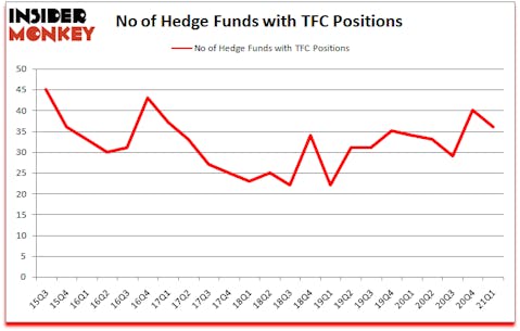 Truist Financial Corporation (NYSE:TFC) has seen a decrease in support from the world’s most elite money managers lately. Truist Financial Corporation (NYSE:TFC) was in 36 hedge funds’ portfolios at the end of March. The all time high for this statistic is 45. Our calculations also showed that TFC isn’t among the 30 most popular stocks among hedge funds (click for Q1 rankings).
