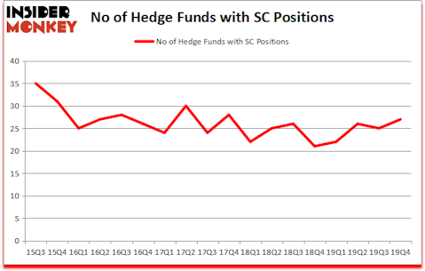 At Q4’s end, a total of 27 of the hedge funds tracked by Insider Monkey held long positions in this stock, a change of 8% from one quarter earlier. The graph below displays the number of hedge funds with bullish position in SC over the last 18 quarters. So, let’s find out which hedge funds were among the top holders of the stock and which hedge funds were making big moves.