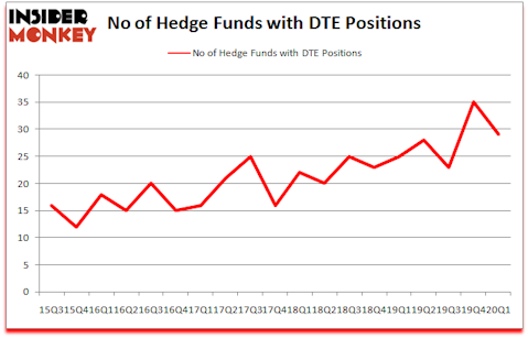 Insider Monkey has processed numerous 13F filings of hedge funds and successful value investors to create an extensive database of hedge fund holdings. The 13F filings show the hedge funds’ and successful investors’ positions as of the end of the first quarter. You can find articles about an individual hedge fund’s trades on numerous financial news websites. However, in this article we will take a look at their collective moves over the last 4.5 years and analyze what the smart money thinks of DTE Energy Company (NYSE:DTE) based on that data.
