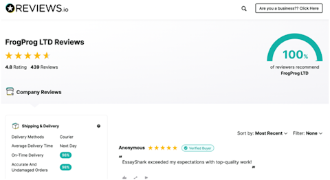 Staying in the academic writing business for tens of years, EssayShark has earned a reputation among students and has become one of the most well-known services available these days. Due to the fact that thousands of clients have used their services, top review websites like Sitejabber and Reviews.io talk about them. And, of course, they have a review page on their website as well.