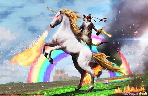 A militant cat wielding a gun and riding a fire breathing unicorn. It’s ethereal, it’s symbolic and it celebrates everything from the inception of the internet, to the upsurge in NFTs and it’s a celebration of digital art.