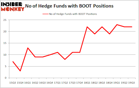 At the end of the third quarter, a total of 22 of the hedge funds tracked by Insider Monkey were bullish on this stock, a change of 0% from the previous quarter. Below, you can check out the change in hedge fund sentiment towards BOOT over the last 17 quarters. So, let’s see which hedge funds were among the top holders of the stock and which hedge funds were making big moves.