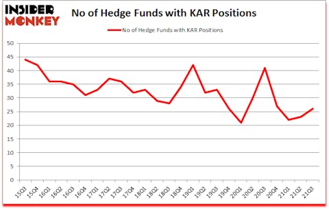 KAR Auction Services Inc (NYSE:KAR) has experienced an increase in hedge fund interest in recent months. KAR Auction Services Inc (NYSE:KAR) was in 26 hedge funds’ portfolios at the end of September. The all time high for this statistic is 44. Our calculations also showed that KAR isn’t among the 30 most popular stocks among hedge funds (click for Q3 rankings).