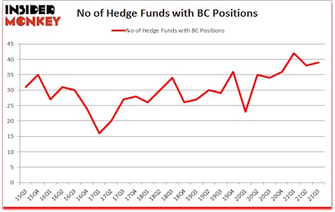 At Q3’s end, a total of 39 of the hedge funds tracked by Insider Monkey were bullish on this stock, a change of 3% from the previous quarter. Below, you can check out the change in hedge fund sentiment towards BC over the last 25 quarters. So, let’s find out which hedge funds were among the top holders of the stock and which hedge funds were making big moves.