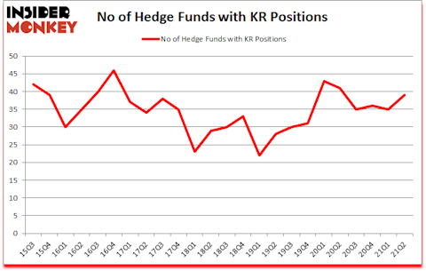 The Kroger Co. (NYSE:KR) was in 39 hedge funds’ portfolios at the end of the second quarter of 2021. The all time high for this statistic is 46. KR has seen an increase in enthusiasm from smart money recently. There were 35 hedge funds in our database with KR holdings at the end of March. Our calculations also showed that KR isn’t among the 30 most popular stocks among hedge funds (click for Q2 rankings).