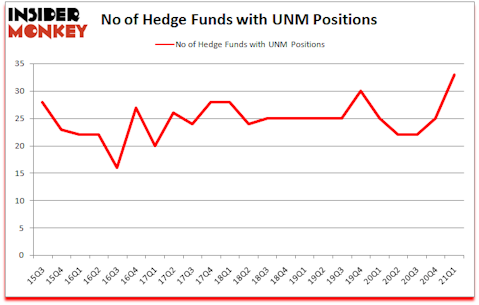 Unum Group (NYSE:UNM) was in 33 hedge funds’ portfolios at the end of March. The all time high for this statistic was previously 30. This means the bullish number of hedge fund positions in this stock currently sits at its all time high. UNM investors should pay attention to an increase in hedge fund interest in recent months. There were 25 hedge funds in our database with UNM positions at the end of the fourth quarter. Our calculations also showed that UNM isn’t among the 30 most popular stocks among hedge funds (click for Q1 rankings).