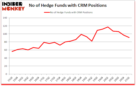 Is salesforce.com, inc. (NYSE:CRM) a cheap stock to buy now? The best stock pickers were becoming less hopeful. The number of long hedge fund bets were trimmed by 6 in recent months. salesforce.com, inc. (NYSE:CRM) was in 91 hedge funds’ portfolios at the end of the first quarter of 2021. The all time high for this statistic is 117. Our calculations also showed that CRM ranked 28th among the 30 most popular stocks among hedge funds (click for Q1 rankings). There were 97 hedge funds in our database with CRM positions at the end of the fourth quarter.