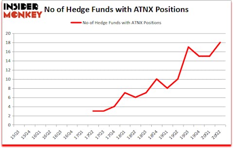 At the end of June, a total of 18 of the hedge funds tracked by Insider Monkey held long positions in this stock, a change of 20% from one quarter earlier. Below, you can check out the change in hedge fund sentiment towards ATNX over the last 20 quarters. With hedgies’ capital changing hands, there exists a select group of noteworthy hedge fund managers who were upping their stakes substantially (or already accumulated large positions).