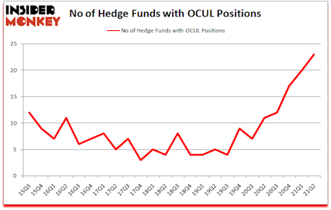 Ocular Therapeutix Inc (NASDAQ:OCUL) was in 23 hedge funds’ portfolios at the end of June. The all time high for this statistic is 20. This means the bullish number of hedge fund positions in this stock currently sits at its all time high. OCUL has experienced an increase in hedge fund interest recently. There were 20 hedge funds in our database with OCUL holdings at the end of March. Our calculations also showed that OCUL isn’t among the 30 most popular stocks among hedge funds (click for Q2 rankings).