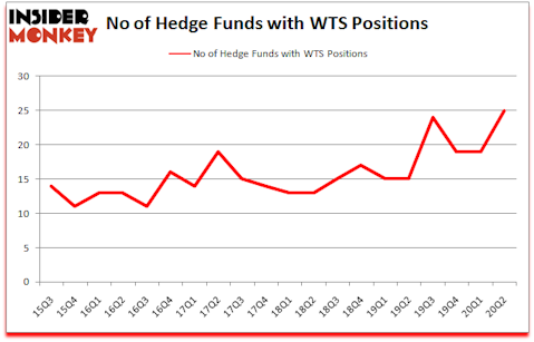 At the end of the second quarter, a total of 25 of the hedge funds tracked by Insider Monkey were bullish on this stock, a change of 32% from the previous quarter. Below, you can check out the change in hedge fund sentiment towards WTS over the last 20 quarters. With hedgies’ capital changing hands, there exists a few notable hedge fund managers who were upping their stakes substantially (or already accumulated large positions).