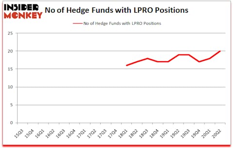 Open Lending Corporation (NASDAQ:LPRO) has seen an increase in hedge fund sentiment of late. Open Lending Corporation (NASDAQ:LPRO) was in 20 hedge funds’ portfolios at the end of the second quarter of 2020. The all time high for this statistics is 19. This means the bullish number of hedge fund positions in this stock currently sits at its all time high. Our calculations also showed that LPRO isn’t among the 30 most popular stocks among hedge funds (click for Q2 rankings and see the video for a quick look at the top 5 stocks).