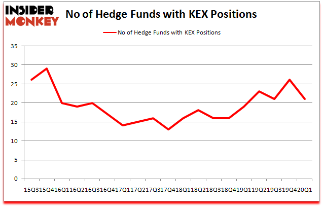 At Q1’s end, a total of 21 of the hedge funds tracked by Insider Monkey were bullish on this stock, a change of -19% from one quarter earlier. The graph below displays the number of hedge funds with bullish position in KEX over the last 18 quarters. So, let’s review which hedge funds were among the top holders of the stock and which hedge funds were making big moves.