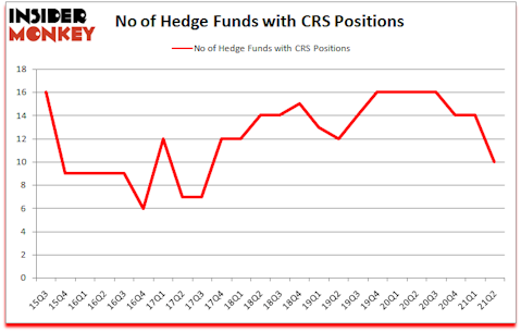 Heading into the third quarter of 2021, a total of 10 of the hedge funds tracked by Insider Monkey were bullish on this stock, a change of -29% from the first quarter of 2020. Below, you can check out the change in hedge fund sentiment towards CRS over the last 24 quarters. So, let’s check out which hedge funds were among the top holders of the stock and which hedge funds were making big moves.