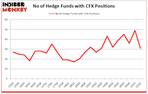 At Q2’s end, a total of 31 of the hedge funds tracked by Insider Monkey held long positions in this stock, a change of -37% from the first quarter of 2020. The graph below displays the number of hedge funds with bullish position in CFX over the last 24 quarters. With hedge funds’ positions undergoing their usual ebb and flow, there exists an “upper tier” of noteworthy hedge fund managers who were boosting their stakes considerably (or already accumulated large positions).
