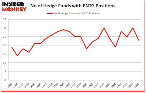 At the end of the first quarter, a total of 23 of the hedge funds tracked by Insider Monkey were bullish on this stock, a change of -23% from the previous quarter. Below, you can check out the change in hedge fund sentiment towards ENTG over the last 23 quarters. With the smart money’s sentiment swirling, there exists a few key hedge fund managers who were upping their holdings meaningfully (or already accumulated large positions).