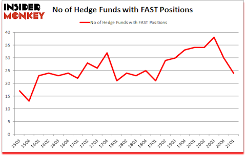 Is Fastenal Company (NASDAQ:FAST) undervalued? The smart money was cutting their exposure. The number of long hedge fund positions dropped by 6 lately. Fastenal Company (NASDAQ:FAST) was in 24 hedge funds’ portfolios at the end of the first quarter of 2021. The all time high for this statistic is 38. Our calculations also showed that FAST isn’t among the 30 most popular stocks among hedge funds (click for Q1 rankings). There were 30 hedge funds in our database with FAST positions at the end of the fourth quarter.