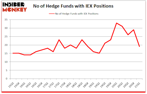 At first quarter’s end, a total of 19 of the hedge funds tracked by Insider Monkey held long positions in this stock, a change of -34% from the previous quarter. Below, you can check out the change in hedge fund sentiment towards IEX over the last 23 quarters. So, let’s see which hedge funds were among the top holders of the stock and which hedge funds were making big moves.