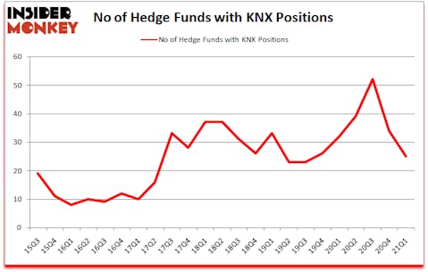 Knight-Swift Transportation Holdings Inc. (NYSE:KNX) was in 25 hedge funds’ portfolios at the end of March. The all time high for this statistic is 52. KNX investors should pay attention to a decrease in hedge fund interest lately. There were 34 hedge funds in our database with KNX holdings at the end of December. Our calculations also showed that KNX isn’t among the 30 most popular stocks among hedge funds (click for Q1 rankings).