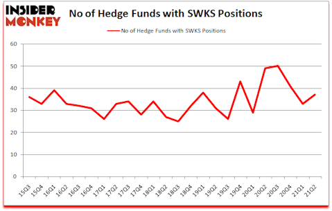 Is Skyworks Solutions Inc (NASDAQ:SWKS) a bargain? Prominent investors were buying. The number of bullish hedge fund positions increased by 4 recently. Skyworks Solutions Inc (NASDAQ:SWKS) was in 37 hedge funds’ portfolios at the end of the second quarter of 2021. The all time high for this statistic is 50. Our calculations also showed that SWKS isn’t among the 30 most popular stocks among hedge funds (click for Q2 rankings). There were 33 hedge funds in our database with SWKS holdings at the end of March.